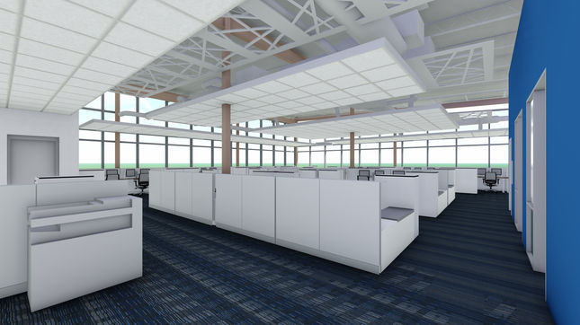 These are some renderings from a project I worked on for Three Rivers FCU bank. While these renderings are not mine and I did not create them, they do show the materials that I put in the building very well. The clients wanted to keep a similar look between their branches so we stuck with blues throughout. However, they wanted to go with a more modern approach with the concrete and blue LVT in certain place. The carpet that we selected was inspired by some of Interfaces pictures with a gradient between the carpet tiles. The overall picture shows the transition the best.